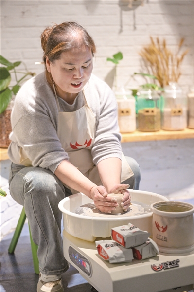 据王俊清介绍,烧制是陶器制作的关键环节,决定了陶器的质量和性能。烧制的方法也有多种,常见的有传统的柴烧、煤烧、气烧、电烧等。在烧制过程中,需要控制好温度、烧制时间等参数,以确保陶器能够达到理想的烧制状态,具有良好的强度、硬度、吸水率等性能。“整个陶艺的过程,不仅涉及到物理的加工技术,还包括艺术创造和审美表达,使得每一件陶器都具有其独特的价值和意义。沉浸在陶艺的世界里,真是很放松,看着一件件精美的成品制作出来,那种感觉特别美好。”王俊清兴奋地说。