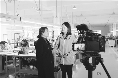 近日,在贵州省黔东南苗族侗族自治州施秉县一家服装企业生产车间,直播人员和人社部门工作人员在线上向求职者介绍岗位信息,让求职者快速找到满意的工作,让企业更精准地招到所需的员工。(12月5日 新华社)