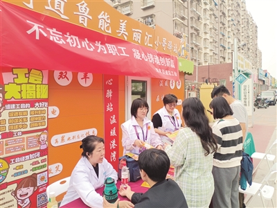 活动当天,各镇、街道、功能区总工会在辖区内设立分会场,除提供入会咨询、互助保障、权益维护、法律咨询、反诈宣传等常规咨询项目外,现场还搭载了中医把脉、血压血糖测量、免费理发、免费裁剪、充气充电等特色服务项目,吸引职工驻足,打通“两新”组织和新就业形态劳动者的入会渠道。