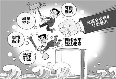 记者从公安部获悉,今年以来,公安部依托“净网2024”专项行动,聚焦造谣引流、舆情敲诈、刷量控评、有偿删帖等突出违法犯罪活动,部署全国公安机关开展打击整治“网络水军”违法犯罪工作,共侦破案件900余起,抓获嫌疑人5000余名。公安部11日公布多起依法打击“网络水军”违法犯罪典型案例。(12月11日 新华社)□朱慧卿