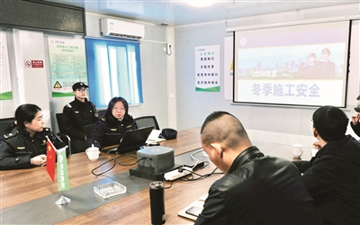 近日,石景山区五里坨街道综合行政执法队开展“冬季安全生产 执法宣传进工地”城管开放日活动,邀请辖区内其他在建施工现场负责人共同参与,通过发放宣传资料和现场讲解的方式,普及冬季施工安全管理知识,引导施工单位自觉守法。本报记者 曹立栋 摄影报道