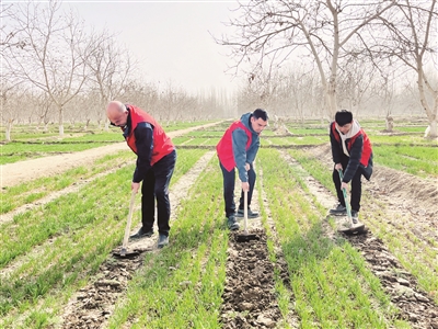 去年年底,大家见证了努尔盛大的维吾尔族婚礼,现在他的妻子在家纺织艾德莱斯绸,他又承包了10亩土地,种上了给他生活带来希望的桃树。白天他在附近工厂务工,空闲时间和妻子一起在桃园忙碌,努尔逢人就讲:“多亏北京银行派来关山博宇这个好兄弟,让我过上了幸福生活!”
