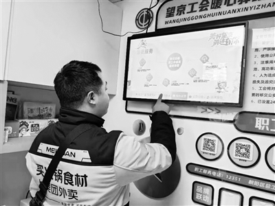 该驿站提供24小时智能服务,设置智能感应门,每日早8点到晚8点期间可自动开门,晚8点到早8点期间扫描二维码登记信息即可进入。该驿站还设置“美好望京,骑迹有你”智能交互导航智慧屏,将望京区域内工会驿站阵地导引图、便民服务导引图、企业服务导引图汇集在智慧屏中,以手绘形式呈现,方便外卖配送员、快递员随时查询。