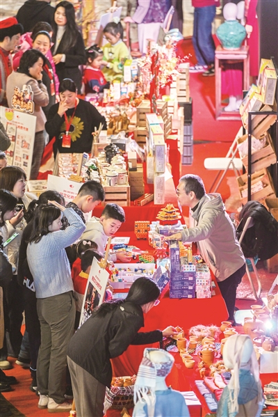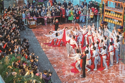 22日清早,国家大剧院里张灯结彩,北水下廊道里印有2007至2024数字的红绸垂幔和大红灯笼相映成辉,象征着国家大剧院陪伴观众共同度过的17载岁月。在橄榄厅,舞剧《杨家岭的春天》中的陕北秧歌片段展示吸引了大量观众,演出赢得阵阵掌声;公共空间,舞蹈快闪、童声合唱、手风琴五重奏等接连上演;图书文创市集等热闹非凡;手工非遗互动与集章打卡等活动让观众深度融入艺术氛围。