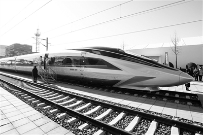 记者从中国国家铁路集团有限公司获悉,12月29日,运营时速400公里的CR450动车组样车在北京发布,这标志着“CR450科技创新工程”取得重大突破,将极大提升中国铁路科技创新水平和科技自立自强能力,进一步巩固扩大中国高铁技术世界领跑优势。图为CR450AF动车组样车。 新华社发