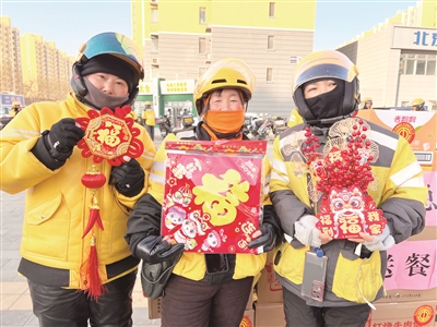本报讯 (记者 刘欣欣) 近日,朝阳区金盏地区总工会走进辖区内4家外卖和快递站点,为工作在这里的新就业形态劳动者送上方便食品、福字、新春摆件等慰问品,共计慰问600余人。