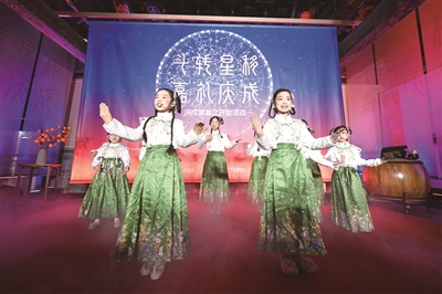 ▲“斗转星移 嘉礼庆成”庆成宫首次开放活动上,学生们合唱表演《北京中轴线》