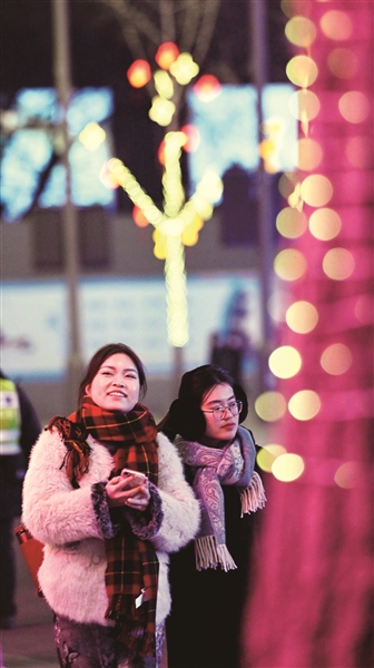 北京的街头流光溢彩,市民满怀憧憬迎接新年