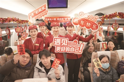 2024年12月30日,由国铁北京局天津客运段值乘的北京南到天津的C2025次京津城际列车上,举办了一场温馨而欢快的迎新年活动。由于车次与即将到来的新年数字“2025”恰好吻合,这趟列车被旅客们亲切地称为“2025新年城际列车”。