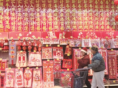 新年刚过,京城各大商超卖场的年货专区已被红灯笼、红福字等装饰得红红火火。“春联、窗花、福字、中国结都是过年必不可少的东西,既是对传统文化的传承,又寄托了大家的美好愿望。”一位正在挑选年货的市民说。
