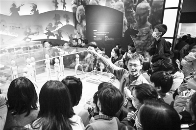 近日,“天开一统——秦汉文物主题展”在天津博物馆启幕,来自11个省市、16家文博单位的近400件(套)秦汉文物在展览中亮相,吸引了众多观众前来参观。展览预计展至2025年3月底,向社会免费开放。图为讲解员为观众讲解。 新华社发