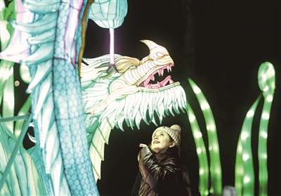 近日,一场“东方世界:中国花灯展”在意大利罗马举行。约1公里长的展览路线上布置了220个以中国龙宫和东方神话为主题的花灯,吸引市民游客前来观赏游玩。图为观众欣赏中国龙造型灯饰。