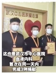 近日,武汉市中心医院血液内科迎来3名志愿者——1989年出生的魏老师、1999年出生的小谢、2003年出生的小徐。三人都是2023年加入的中华骨髓库,又在同一年同一天进行捐献,成为湖北省第690例、691例、692例造血干细胞捐献者,这也是武汉市中心医院血液内科首次在同一天内完成3例捐献。(图片及新闻来自长江日报)