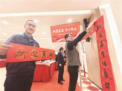 本报讯(记者 张晶)近日,“翰墨送福 匠心致远”新春笔会——走进首都工匠学院活动在北京市总工会职工大学(北京市工会干部学院)举办。现场,职工艺术家们挥毫泼墨,为劳模工匠、一线职工代表书写“福”字和新春对联,用笔墨向劳动者表达敬意。