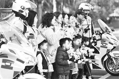 帅气的铁骑特技展示、竞争激烈的交通安全有奖问答……1月10日是第五个中国人民警察节,当天,一场丰富多彩的“文明交通·感谢有你”警营开放日活动在珠海交警支队举行。(1月12日《珠海特区报》)