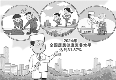 记者10日从国家卫生健康委了解到,2024年我国居民健康素养水平达到31.87%,比2023年提高2.17个百分点。(1月10日 新华社)□朱慧卿