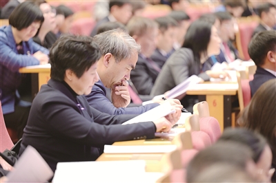 昨天,参加市十六届人大三次会议第三次全体会议的代表认真听取市两院工作报告。