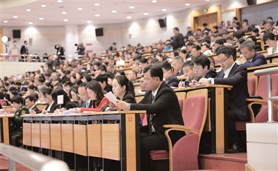 会场内外同频共振,政声民意交融共鸣。“我们要锚定既定战略目标向前进,一张蓝图干到底,才能交出满意答卷。”“在新的一年里,我将结合工作实际,履职担当,苦干实干!”代表们纷纷发出奋进之声。