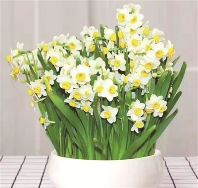 水仙花,芳姿绰约,素洁幽雅,清香宜人,素有“凌波仙子”之美誉,且名字中有一“仙”字,被视为吉祥如意、和平友好的象征,历来为老北京人过年之首选。民国《北平风俗小记》有“腊月末,城南花匠携水仙数盆,于花市出售,其花亭亭玉立,清香淡雅,不染纤尘,有凌波仙子之称,为文人雅士所青睐,置于厅堂,叶片青翠,花香扑面,实为冬日卉中之上品”的记述。