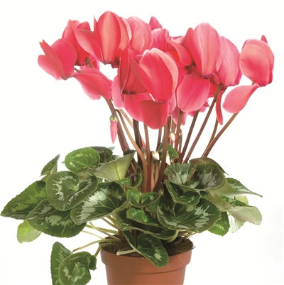 仙客来,俗称兔子花,20世纪20年代传入我国。其名为外来译音,意为“仙客翩翩而至”,寓意吉祥如意。因花色鲜艳,花形奇特,颇受人们的青睐,被誉为“盆花之王”。其花期多是从元旦到四月底,花开最好的时候,是从腊月到正月,也正是新春时节,所以被誉为“迎春花”“报春花”,尤其受到老北京人的青睐。有诗赞曰:“仙驾祥云袅,清香醉尘埃。华贵不争宠,倚松伴梅开。”