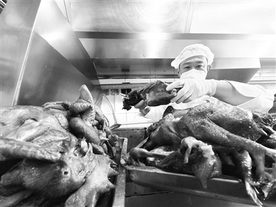 春节临近,京城各家老字号纷纷拿出“绝活”让市民饱口福。记者昨天在护国寺小吃地安门店看到,上午10点多,这里已经排了不少顾客。该店经理介绍,连日来店里的特色扒鸡每天限量在三四百只,仍然供不应求,店里师傅24小时轮班,以保障节日市场供应。