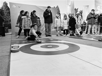 活动现场开展了青少年旱地冰壶体验赛,参加比赛的青少年分为三组,竞相尝试将冰壶滑向目标区域,并通过策略、动作和技术去争取得分。随后,做冰灯、福字拓印等内容吸引了市民游客体验。此外,颐和园同期举办的梅花·蜡梅花迎春文化展为本次活动增添了别样的文化艺术韵味。