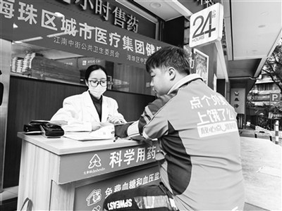 新就业形态劳动者为市民的日常生活提供了极大便利,但也面临户外工作时间长、工作强度大等情况。他们值得尊敬,也需要关爱。暖“新”药房既呵护了他们的身体,又温暖了他们的心,值得点赞。□方醒