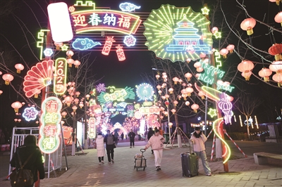 在北京,为庆贺新春,“2025年京彩新春彩灯嘉年华”活动于1月22日在北京园博园盛大开幕。10余万件彩灯挂件汇聚一园,有长达1000余米的祈福通道,满载美好祝福的“福禄寿喜”、造型活泼灵动的国宝文物等。
