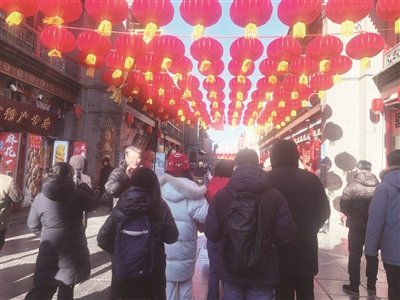 在天津市古文化街,热闹的舞龙舞狮,一下子让年味浓郁了。天津古文化街经营业态覆盖文化用品、手工艺品、相声茶馆、文化展馆等,中华和津门老字号、国家和省市级非遗商家林立。景区内天后宫、玉皇阁、戏楼、通庆里等历史风貌建筑得到有效保护利用,民俗民风得以继承延续。今年春节期间,这里将组织众多的民俗文化活动,以其特有的天津味、民俗味、文化味吸引各方游客。