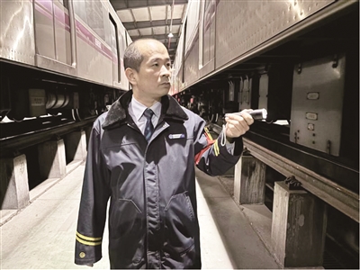 当天早上5点55分,天还未亮,史开印步入停车列检库,核对停车股道和列车车号无误后,开始巡视列车。他穿梭于车厢之间,逐一审视着车载信号系统、牵引制动系统、车门状态等,一圈检查下来20多分钟。为确保乘客温暖,他在列车出库前,将客室电暖调至“全暖”。随着电笛的悠长鸣响,列车缓缓驶出,迎向新年的曙光。6点31分,列车准时到达正线。