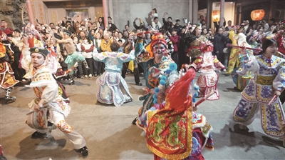 “铛铛铛铛”……在开道锣鼓威风凛凛的敲击声中,一队队装扮成梁山好汉形象的表演者依次行进而来,他们每人拿着两根短棒,边走边击棒舞动,配合着整齐划一的吆喝声,道路两旁围观的群众不禁高声喝彩,这就是春节期间记者在广东潮汕地区看到的国家级非遗项目——潮汕英歌舞。