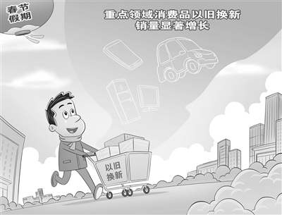 记者10日从国家发展改革委获悉,春节期间(1月28日至2月4日),全国消费品以旧换新活动火热开展,汽车、家电家居、手机等数码产品等以旧换新销售量达到860万台(套)、销售额超过310亿元,家电、手机销售收入同比大幅增长约166%、182%,消费市场活力有效提升。(2月10日 新华社)□王琪
