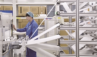 春节假期后,北京市各类企业积极复工复产,调试生产线、安装新设备,全面进入“加速跑”模式。图为工人在位于大兴区亦庄镇的高科技企业普瑞奇科技有限公司高端流体过滤材料生产车间作业。 新华社发