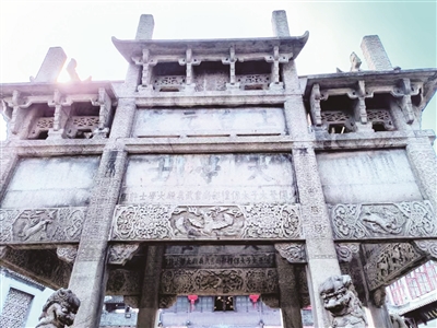 穿过古朴端庄的阳和门,就看到一座气势不凡的石牌坊矗立在蓝天下,这就是有着“东方的凯旋门”美誉的许国牌坊。