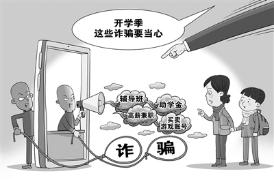 随着开学季的到来,针对学生及家长的诈骗进入高发时段。警方提醒广大家长和学生警惕涉辅导班、助学金、高薪兼职、买卖游戏账号等诈骗,缴费转账先核实,不要落入陷阱。(2月16日 新华社)□朱慧卿