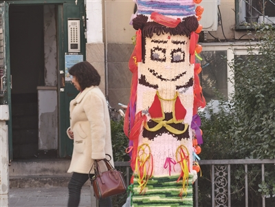 近日,一件哪吒图案的大树毛衣亮相东城区灯市口大街,吸引了不少路人的目光。这件针织版哪吒作品出自东华门街道东厂社区的工作人员之手,从创意构思到成品出炉,花费了近一周的时间。站在马路对面,远远地就能看见大树身上一张调皮的笑脸。走近一瞧,大树毛衣上的哪吒细节满满:脚踩着金色铁丝和丝带制成的风火轮,身上缠绕着红色薄纱混天绫,头上有两个立体的“小鬏鬏”,还扎着红丝带,活灵活现。