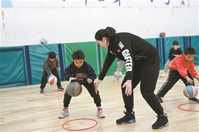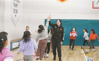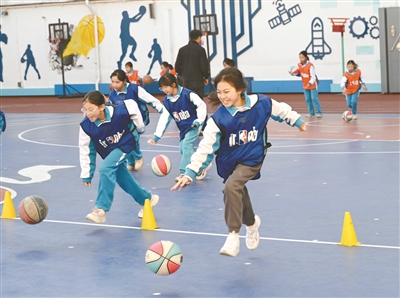 东城区和平里第一小学是全国校园篮球特色学校,上世纪八十年代就建有迷你篮球馆,近年来购置了电子可调节篮球架等设施器材。从一二年级的小篮球游戏课到三至六年级的篮球课,从大课间的篮球自编操到课后篮球兴趣班,还有每年举办的“小篮球欢乐季”和校园篮球竞赛,学校全方位、多层次推进小篮球运动的普及和发展。此外还推出啦啦操、单板滑雪、羽毛球等项目,供学生自主选择。丰富有趣的体育课活动内容极大提升了学生的锻炼兴趣,该校学生人人会打篮球,男女篮球队多次在教育部、北京市的校园篮球赛事中夺得冠亚军。在2024年东城区《国家学生体质健康标准》测试四、六、八年级统测中,该校学生的满分率达到99%。