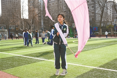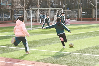 作为全国青少年校园足球特色学校,丰台区方庄第二小学将小足球纳入体育校本课程体系,足球项目堂堂有安排,实现对全体学生的覆盖。学校还相继开设武术、跆拳道、橄榄球等特色课程,为低年级学生量身打造体育舞蹈课,帮助学生在丰富多彩的课程中掌握多元运动技能。同时,方庄第二小学每学期组织一次体育健康月活动,整合常规测试、单项体育技能比赛、班级足球联赛、运动会等多种形式,并开展“运动小擂台”活动,极大激发了学生的锻炼热情。全校830多名学生中有200余名小足球队员每天在训练场上挥洒汗水,男足与女足队伍成绩相当亮眼,各校队招新时,报名者“爆棚”,成为全校“盛事”。在2024年丰台区学生体质健康统测中,该校80.87%的学生成绩达到良好及以上等级。