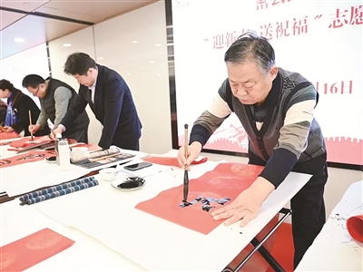 1月14日,密云区2025年万福迎春系列文化活动在河南寨镇北京德一园商务中心开幕。活动现场,一副副寓意吉祥、辞意丰富的对联和“福”字,为节日增添了喜庆祥和的氛围。在中关村密云园党群活动中心,书法家们挽袖执笔,挥毫泼墨。苍劲有力的字迹、吉祥如意的话语伴随着浓浓的墨香跃然纸上。一副副饱含新春祝福、寓意吉祥的春联和一个个满溢喜庆祥和的“福”字,不仅承载着中华民族优秀传统文化的深厚底蕴,更传递着广大职工群众对美好生活的向往与祝福。