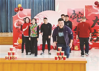 1月23日,密云区总工会机关工会举办“祥蛇开启新征程 工会共唱新欢歌”春节联欢会。活动旨在丰富职工的精神文化生活,增进职工之间的交流,让大家在欢乐祥和的氛围中迎接新春的到来。活动现场布置得年味十足,处处洋溢着新春的气息。工会干部们热情参与,纷纷登上舞台展示自己的才艺,用精彩的表演传递着对新年的祝福。除了精彩的文艺表演,联欢会还设置了互动游戏和抽奖环节,有考验团队协作的“纸杯金字塔”,有考验反应速度的 “你来笔划我来猜”,还有充满趣味性的 “快乐组团”小游戏。大家积极参与,现场气氛热烈。在游戏过程中,大家相互配合,相互鼓励,充分展现了团结协作的精神风貌。