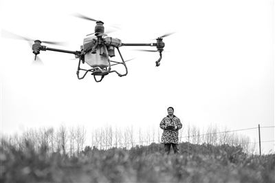 早春时节,各地农民抢抓农时,开展春耕、春管等农事活动,田间地头到处是一派人勤春早的忙碌景象。图为安徽省合肥市蜀山区小庙镇农民使用植保无人机为小麦施肥。