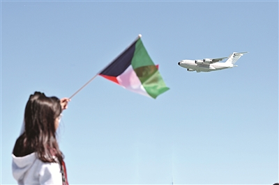 近日,科威特举行一系列活动庆祝国庆日和解放日。2月25日和26日分别是科威特的国庆日和解放日。图为一架科威特空军运输机在科威特城上空参加航空表演。
