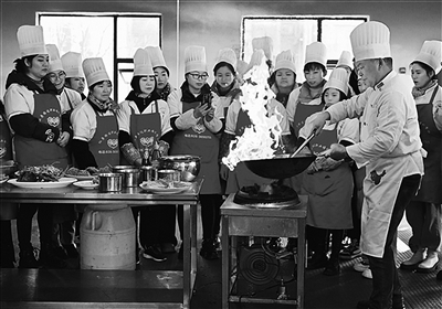 2月25日,在四川省眉山市仁寿县腾达职业培训学校,培训老师正在为学员进行烹饪教学。近年来,仁寿县总工会结合就业市场需求,依托当地职业技能培训机构,免费为有就业需求的下岗人员、返乡农民工等群体提供烹饪、家政、电商等技能培训,并推荐就业。(2月26日《工人日报》)