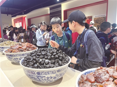 走进北京果脯博物馆,“甜蜜”味道扑面而来,馆长田军向记者介绍,果脯俗称“杂拌儿”,是以苹果、桃、杏、李、梨、枣等原料,用糖或蜂蜜腌制加工制成的食品。北京果脯在中国已有几百年的历史,上至国宴招待中外贵宾;下至民间馈赠亲朋好友。“果脯是情感沟通的纽带,是美好希望的象征。”田军说,北京果脯博物馆以北京果脯传统制作技艺为主线,全面展示了果脯所承载的千年历史和文化,填补了国内没有果脯博物馆的空白,现在已经成为传承和弘扬中华民族优秀传统文化的窗口。