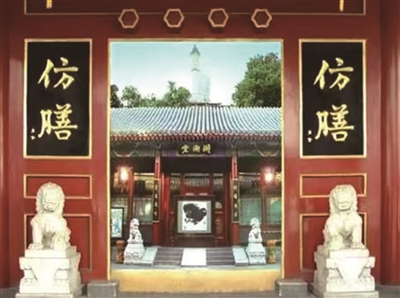 不久,老舍先生所题写的“仿膳”二字,便镌刻于漪澜堂大门门框左右的两块木隔板上。