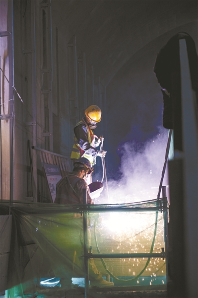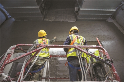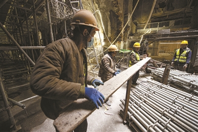 地上,地铁站出入口处,职工操作机械设备正在进行道路改移;地下,地铁站厅、站台深处,职工头戴安全帽正在加紧作业……记者近日走进地铁17号线永安里站建设工地,职工们在各自岗位上紧张有序地忙碌着。