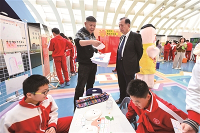 活动现场,教育专家通过鲜活的故事案例为青少年开展儿童性别教育主题分享,并赠送《用爱守护——儿童生命安全教育》图书。在“用爱守护——儿童生命安全教育”展览区域,策展团队从医学和应急安全教育角度,通过展板为学生们普及安全知识;在体验区,老师们带领学生借助木质玩具、沙盘灯箱、人体器官识别拼图等道具,了解人体知识;在游戏区,“丢魔方块”“跳房子”“钻圈” 等传统游戏让学生们在传统与现代融合中收获知识;在互动区,老师身着展览形象玩偶服饰,生动讲述安全教育小故事。