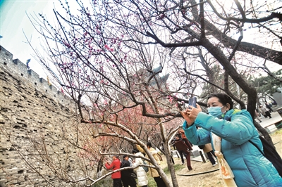 近日,2025年北京明城墙第十八届梅花文化节开幕。经过十余年的引种栽培,目前,北京明城墙遗址公园共栽植了朱砂品种群、跳枝(洒金)品种群、绿萼品种群等50余个品种的千余株梅花,成为京城内梅花品系最多、品种最全的赏梅胜地。