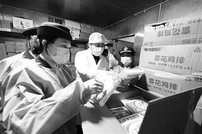 在食品原料库房,执法人员向食堂工作人员索要食品原材料进货台账,与库房里实际存放的物品逐一进行比对,确认台账登记信息准确无误后,并随机抽取了几样预包装食品,对外包装的相关信息进行细致查验。同时对冷冻库房进行检查,经测量冷冻库内实际温度为-18℃,符合冷冻食品的存放规定。