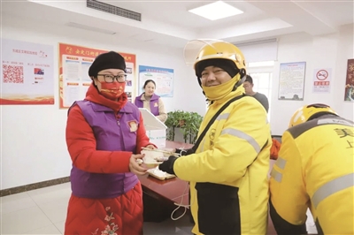 忙完一天的快递分拣工作,顺丰快递小哥小张来到位于东城区西花市大街49号的启元茶庄门口。他轻车熟路地掏出手机扫描茶桶上贴着的二维码,进入“东工惠服务”小程序,完成个人信息登记后,拿起免费纸杯接上一杯热茶慢慢喝了起来。小张说:“这桶热茶水是可以无限次免费畅饮的,解渴又暖身。去年夏天,茶庄还给我们免费发了一袋茶叶,现场扫码登记就能领。”
